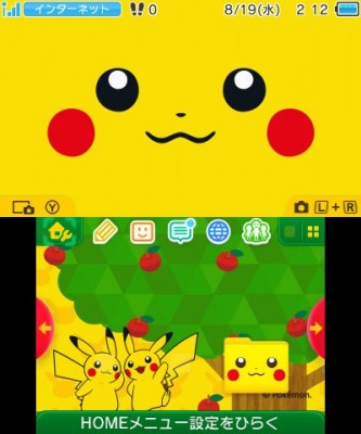 Japón es un país donde Pokémon no para de ser noticia casi día sí y día también: eventos en el Centro Pokémon, scans de CoroCoro… y esta vez, dos nuevos temas para 3DS. Estos nuevos temas están protagonizados por Pikachu: el primero (encima de este párrafo), tendrá la cara del popular Pokémon de tipo Eléctrico en la pantalla superior y en las carpetas, mientras en la táctil se pueden ver dos Pikachu subidos a la rama de un árbol. Este primer tema costará 250¥ y vendrá acompañado de la música de la ruta 1 de Pokémon XY.