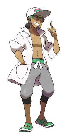 El Profesor Kukui es el Profesor Pokémon de la región de Alola. Su pasión por la investigación de los movimientos Pokémon le ha hecho hasta convertirse en su blanco para poder aprender de primera mano. Su inconfundible estilo y su bata blanca de laboratorio son sus señas de identidad.