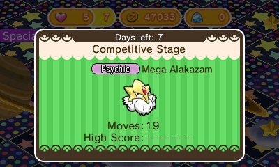 Nuevo martes, y con él, algo que nunca falla, las novedades semanales de Pokémon Shuffle. Para comenzar, destaca la llegada de Mega Alakazam, acompañada por una nueva competición en la que sólo los mejores podrán hacerse con su megapiedra. La competición durará hasta el martes que viene día 20 y en ella podremos obtener los siguientes premios según nuestra posición: