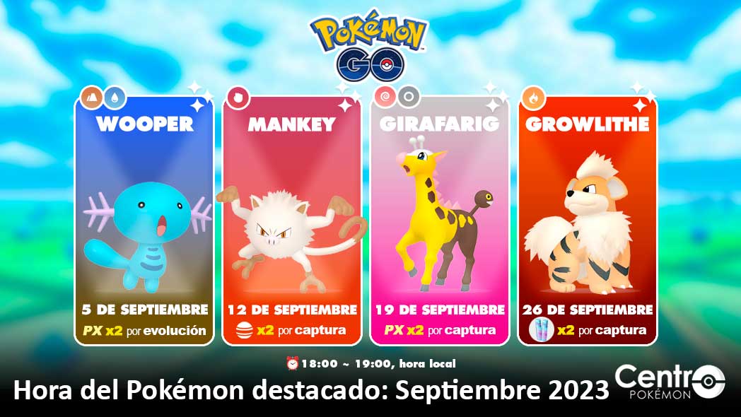 Hora destacada de Pokémon GO Septiembre 2023: cada protagonista destacado, horarios mundiales, bonus y Shiny
