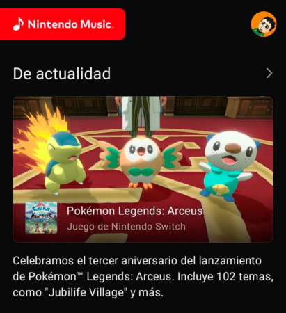La aplicación Nintendo Music para dispositivos móviles Android y iOS ya tiene disponible la banda sonora del juego Leyendas Pokémon: Arceus (Pokémon Legends: Arceus) que hoy festeja su tercer aniversario.