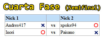 Aquí pueden chequear los emparejamientos por cada fase del torneo: