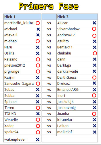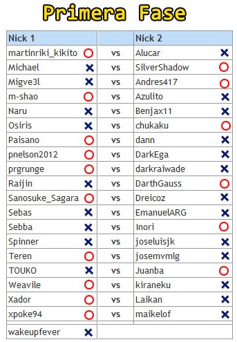 El evento ha iniciado esta tarde alrededor de las 15:30 horario de Argentina. Muchos de los participantes que estaban inscriptos no aparecieron, así que se les dejo pasar de ronda automaticamente a los que no tenian rivales.