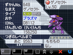 Los que tengan el placer de poseer una de las versiones en japonés de Black 2 & White 2, el segundo evento WiFi ya se encuentra disponible. Este evento entrega al Pokémon Mítico, Genesect. Este Pokémon inédito, tiene un OT que muestra señales de que fue propiedad del Equipo Plasma (Team Plasma), esta en Nivel 50 y conoce los movimientos Tecno Shock (Techno Blast), Doble Rayo (Signal Beam), Bomba Imán (Magnet Bomb) y Rayo Solar (Solarbeam).