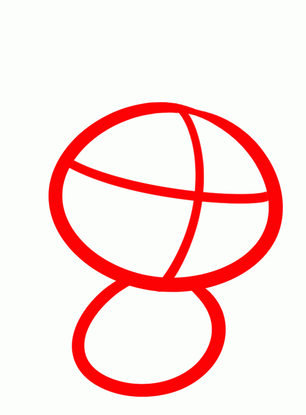 PASO 1: Comienza dibujando dos círculos, uno para la cabeza y otro para el cuerpo. Finaliza este paso dibujando unas lineas faciales de guía.
