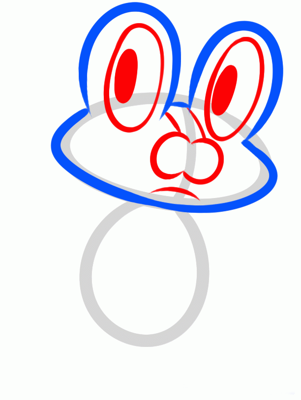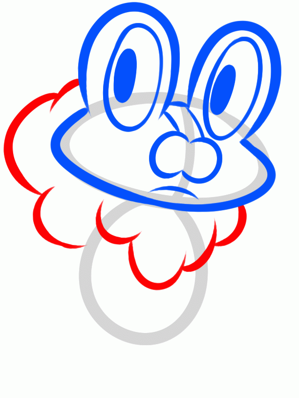 PASO 2: Usando la forma que acabas de hacer, dibuja fuera de la estructura actual de la cabeza de Froakie. Esto incluye dos montículos para los ojos, y una forma ancha para la cara.