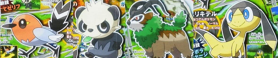 • Yanchan: un Pokémon de tipo Lucha que recuerda a un panda. Mide 0,6m y pesa 8,0kg. Conoce el movimiento Parting Remark, que baja las estadísticas del rival y obliga a cambiarlo.