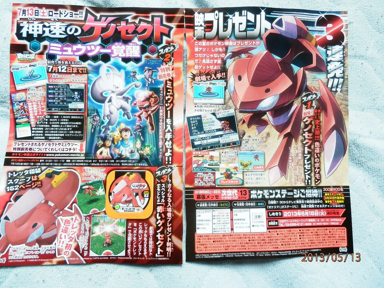 • Confirma que el evento que se distribuirá a raíz de la nueva película Genesect Velocidad Extrema: el despertar de Mewtwo es un Genesect Variocolor, al nivel 100, con los movimientos Velocidad Extrema, Patada Ígnea y Cambiomarcha, y lleva consigo el ítem Pañuelo Elegido. Se distribuirá desde el 13 de julio hasta finales de septiembre.