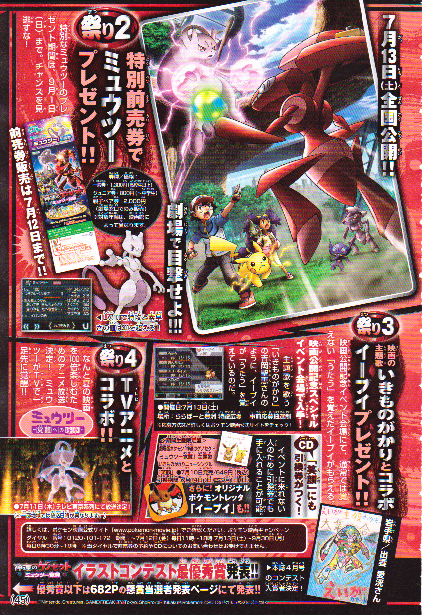 - El 11 de julio se emitirá en Japón el capítulo Mewtwo: el prólogo a su despertar. Es un anticipo de la película que se estrenará dos días después, a modo de publicidad.