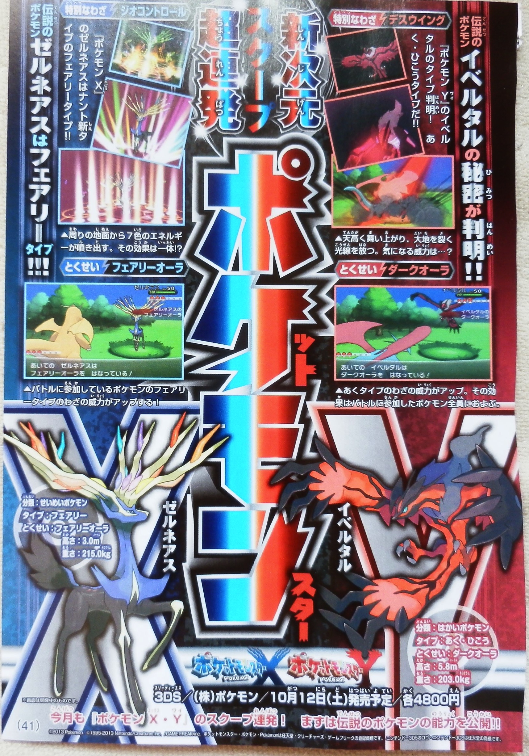 ¡Ya los tenemos! Fueron de los primeros Pokémon de la VI Gen en conocerse, y en esta edición de la revista CoroCoro confirmamos los tipos de los Pokémon Legendarios Xerneas e Yveltal que Hirobyte anunció meses atrás. Vamos con toda la información que nos presenta la revista.