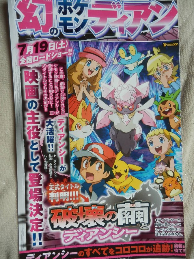 Con respecto a la película, se presenta su nuevo póster, con el nuevo título: The Cocoon of Destruction & Diancie (El Capullo de la Destrucción & Diancie). Se puede leer como subtítulo que es «una gran aventura con la princesa del Bosque de la Mina de Diamantes). Suponemos que tendremos un vídeo pronto en Pokémon Get☆TV con nuevas imágenes de la película (y de Diancie, claro).