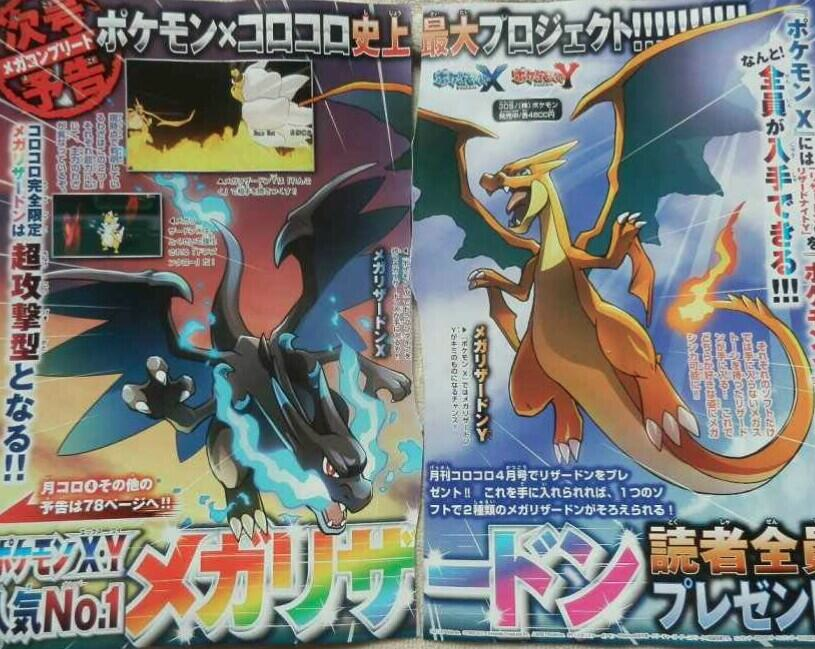 En la siguiente edición de CoroCoro se repartirá un código especial para obtener la Charizardita del otro juego. Es decir, si tienes Pokémon X, podrás obtener un Charizard con el objeto Charizardita Y; y si tienes Pokémon Y, un Charizard con Charizardita X.