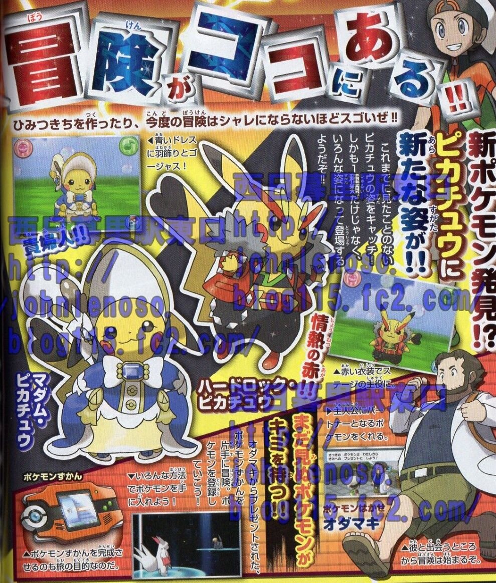 Seguidamente podemos ver a Pikachu en diferentes disfraces. Mientras que algunos sugieren que está relacionado con los concursos, otros dicen que podría ser un tipo de evento. La cola de este Pikachu es diferente a la de cualquier macho o hembra. Además, se confirma el regreso de Pokémon Amie.