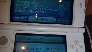 Parece ser que los japoneses ya pudieron conseguir legalmente a Diancie, puesto que aparentemente en Japón se realizó el pre-estreno de la película «Diancie y la Crisálida de la Destrucción», y con ella, fue repartido en evento local el Diancie de la película. Esta información viene de un residente de Japón, que adjuntó fotos del lugar donde se realizó el pre-estreno, además de algunas fotos del evento de Diancie antes y después de ser recibido en algunas 3DS.