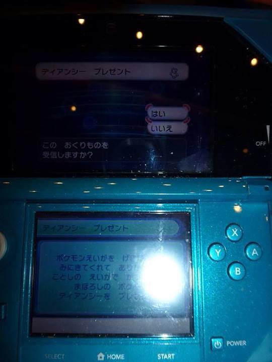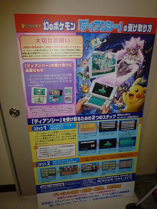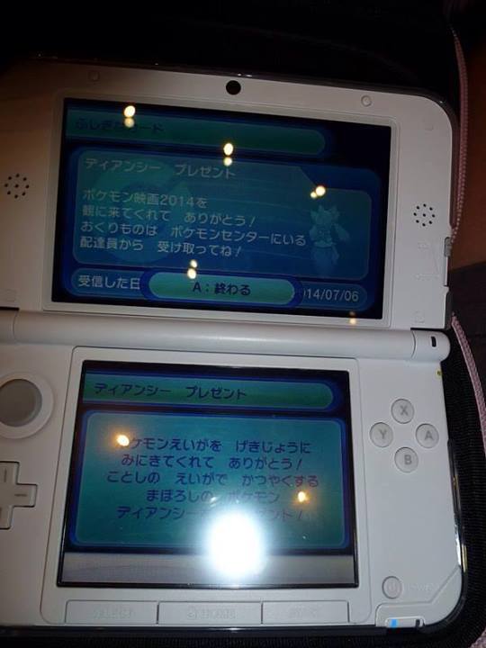 Parece ser que los japoneses ya pudieron conseguir legalmente a Diancie, puesto que aparentemente en Japón se realizó el pre-estreno de la película «Diancie y la Crisálida de la Destrucción», y con ella, fue repartido en evento local el Diancie de la película. Esta información viene de un residente de Japón, que adjuntó fotos del lugar donde se realizó el pre-estreno, además de algunas fotos del evento de Diancie antes y después de ser recibido en algunas 3DS.
