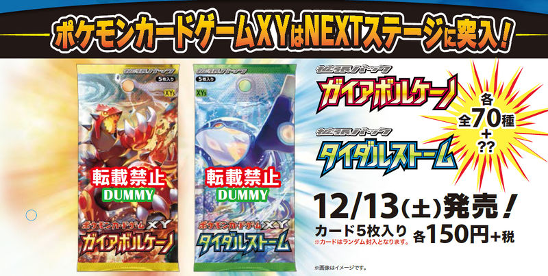Se ha confirmado un nuevo set de cartas Pokémon TCG. Este set es el quinto de la serie XY, dividido en dos sets, llamados Gaia Volcano y Tidal Storm. Estos serán lanzados en Japón el 13 de Diciembre.