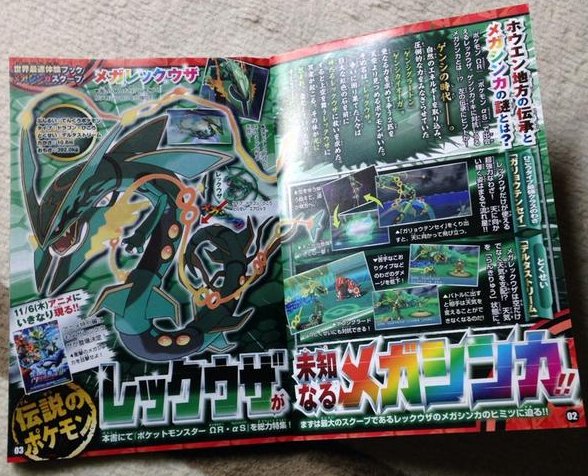- Además se confirma lo que se había especulado sobre Mega Rayquaza que aparecerá en el especial de Pokémon Mega Evolución Acto 2 que saldrá al aire el 6 de Noviembre. En el especial también aparecerán Groudon Primigenio y Kyogre Primigenio.
