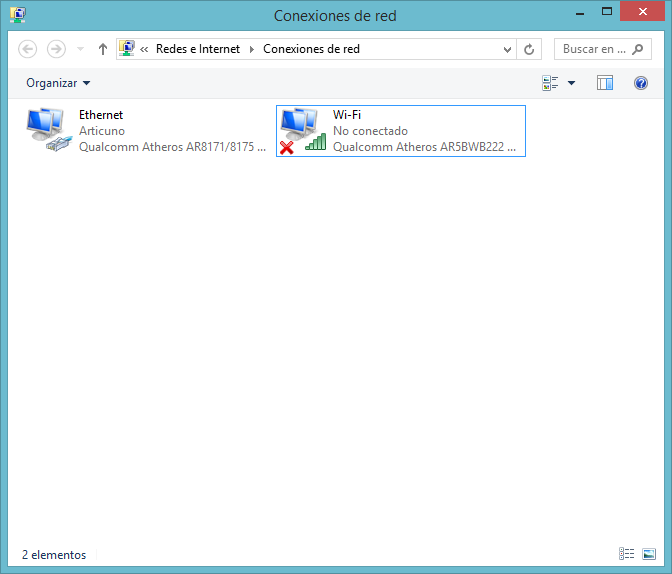 Ok, por ahora dejaremos esto así. Primero vamos a ir a Panel de Control > Redes e Internet > Centro de redes y recursos compartidos y en la barra lateral de la izquierda seleccionaremos la opción Cambiar configuración del adaptador. Se nos abrirá una ventana que contendrá algo parecido a lo siguiente: