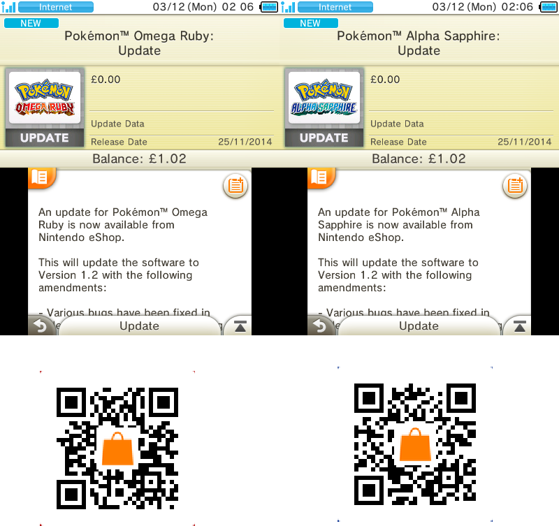 Para descargar la actualización basta con escanear los códigos QR que encabezan la noticia, presionando L+R en el menú principal del Nintendo 3DS.