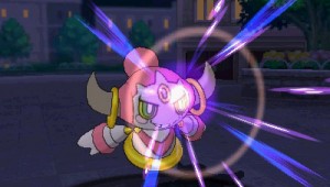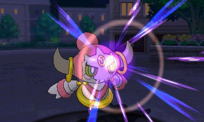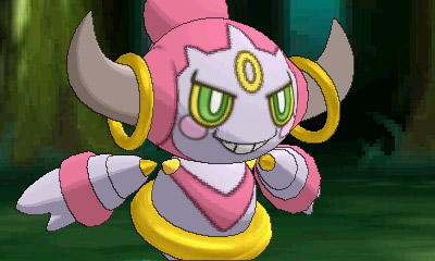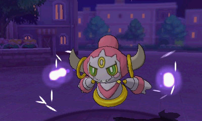 Hoopa es conocido como el Pokémon Travesura y es de tipo Psíquico / Fantasma. Su habilidad es Prestidigitador. Según el sitio web oficial, «se lo reconoce por sus cuernos y el anillo dorado que adorna su tronco. Se dice que sus anillos poseen el poder de deformar el espacio y transportar cualquier objeto salvando enormes distancias».