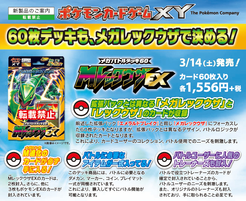 En Japón, aquellos que compren cinco sobres de Emerald Break en los Centros Pokémon recibirán la carta Vínculo Espiritual de Rayquaza. La carta Cinta Fuerte también se dará a aquellos que compren el deck de M Rayquaza -EX, y la carta Máximo cuando compren dos cajas de refuerzo.