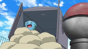 Ash y sus amigos quedan atrapados en una fábrica de Poké Balls, mientras el Equipo Rocket roba sus Pokémon, y Meowth persigue a Pikachu.