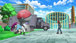 Ash y sus amigos quedan atrapados en una fábrica de Poké Balls, mientras el Equipo Rocket roba sus Pokémon, y Meowth persigue a Pikachu.