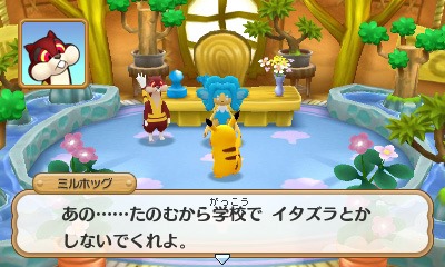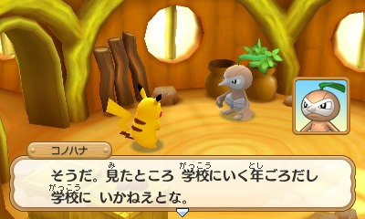 En la escuela aparecerán muchos compañeros que tendrán un papel en la historia. El primero de ellos es tu compañero, un energético y aventurero Pokémon que sueña con crear un mapa del mundo.