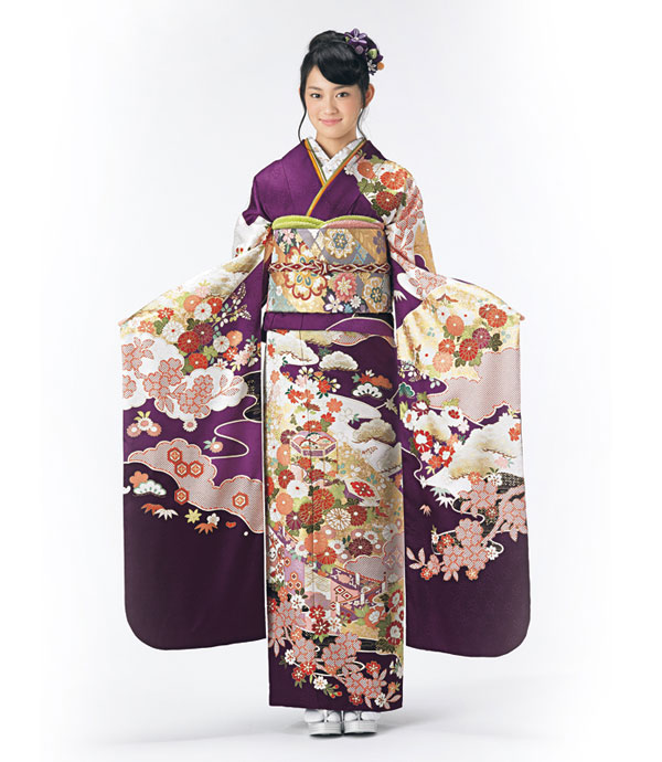 Furisode, kimono con las mangas largas que denota que una mujer no está casada.