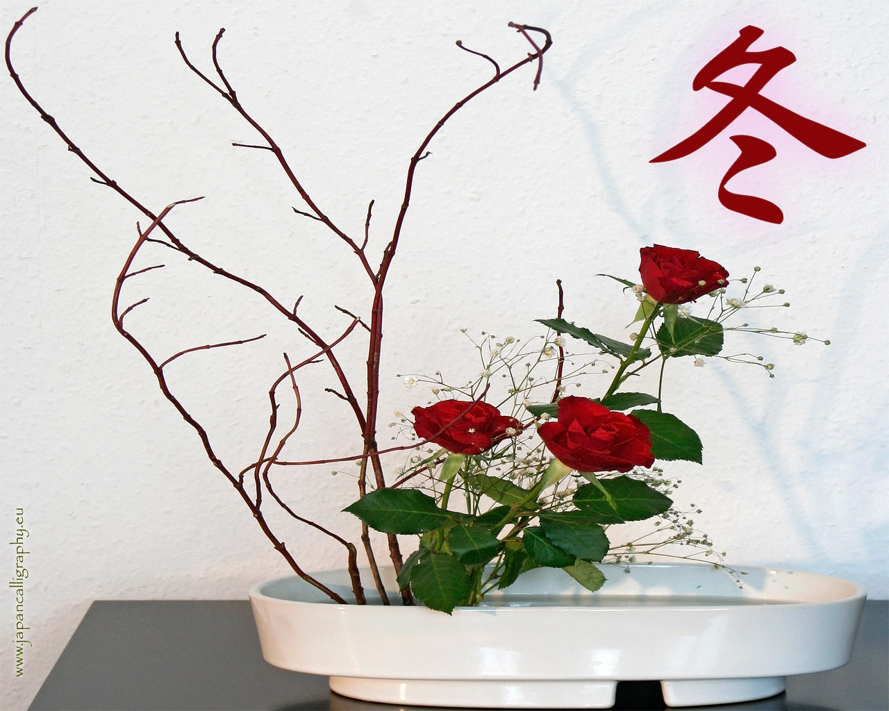 Un ejemplo de un arreglo floral tradicional, como los que realizan las Chicas Kimono en el anime.