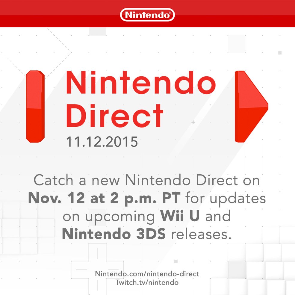 Después de la confirmación de que tendríamos un nuevo Nintendo Direct muy pronto hace semanas, finalmente ha llegado el momento. Nintendo ha confirmado que una nueva presentación tendrá lugar el próximo 12 de noviembre, la cual traerá nueva información de próximos juegos para Wii U y Nintendo 3DS.