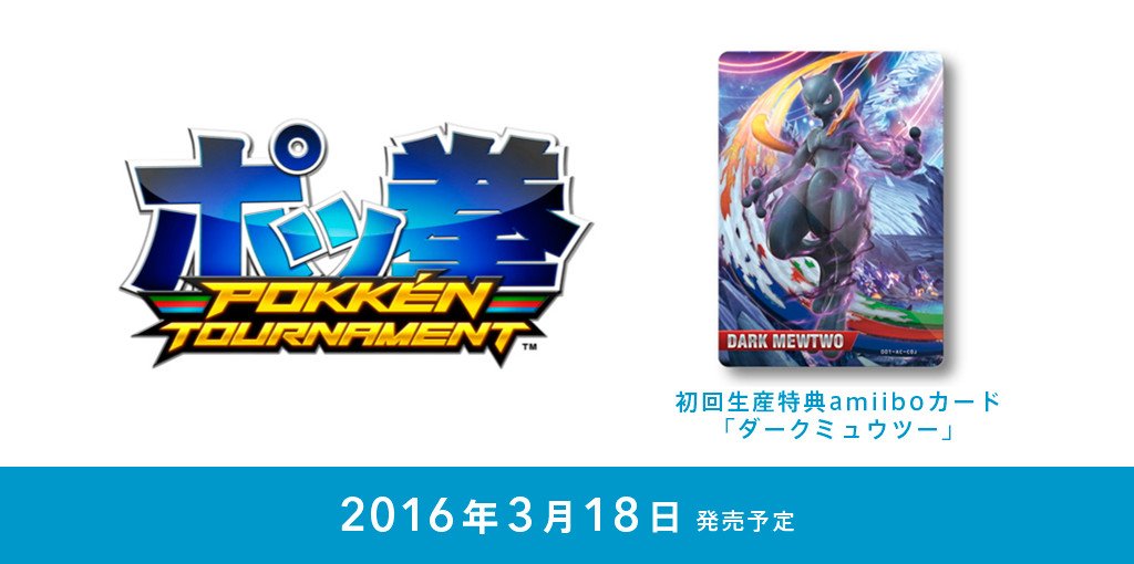 En el Nintendo Direct de hoy se ha revelado que en 2016 se lanzará una línea de tarjetas amiibo de Pokkén Tournament. La primera carta en llegar será la de Mewtwo Oscuro, que servirá para desbloquear a este personaje de una vez, sin tener que hacer todo el proceso normal.