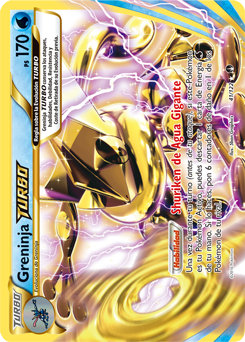 Las dos barajas temáticas que componen esta expansión son ‘Olas Acuchilladas‘ y ‘Ojos Electrizantes‘. Entre las cartas destacadas se puede encontrar a Greninja Turbo, que con solo descartar una carta de Energía Agua, puede añadir hasta 6 contadores de daño en un Pokémon del rival. El ataque ‘Furia Salvaje’ de Luxray Turbo produce 130 puntos de daño, que aumenta a 40 más por cada carta que se consiga hasta que salga cruz. Trevenant Turbo pone 3 contadores de daño en todos y cada uno de los Pokémon del rival. Raticate Turbo puede dejar al objetivo con solo 10 PS. Golduck Turbo permite mover Energía Básica entre tus Pokémon tantas veces como quieras durante tu turno. También están presentes Mega Gyarados-EX, Gyarados-EX, Manaphy-EX, Espeon-EX, Darkrai-EX, Scizor-EX, Mega Scizor-EX, Ho-Oh-EX, Meganium, Emboar-EX, Slowbro, Palkia-EX, Hypno, Togekiss-EX, entre otras.