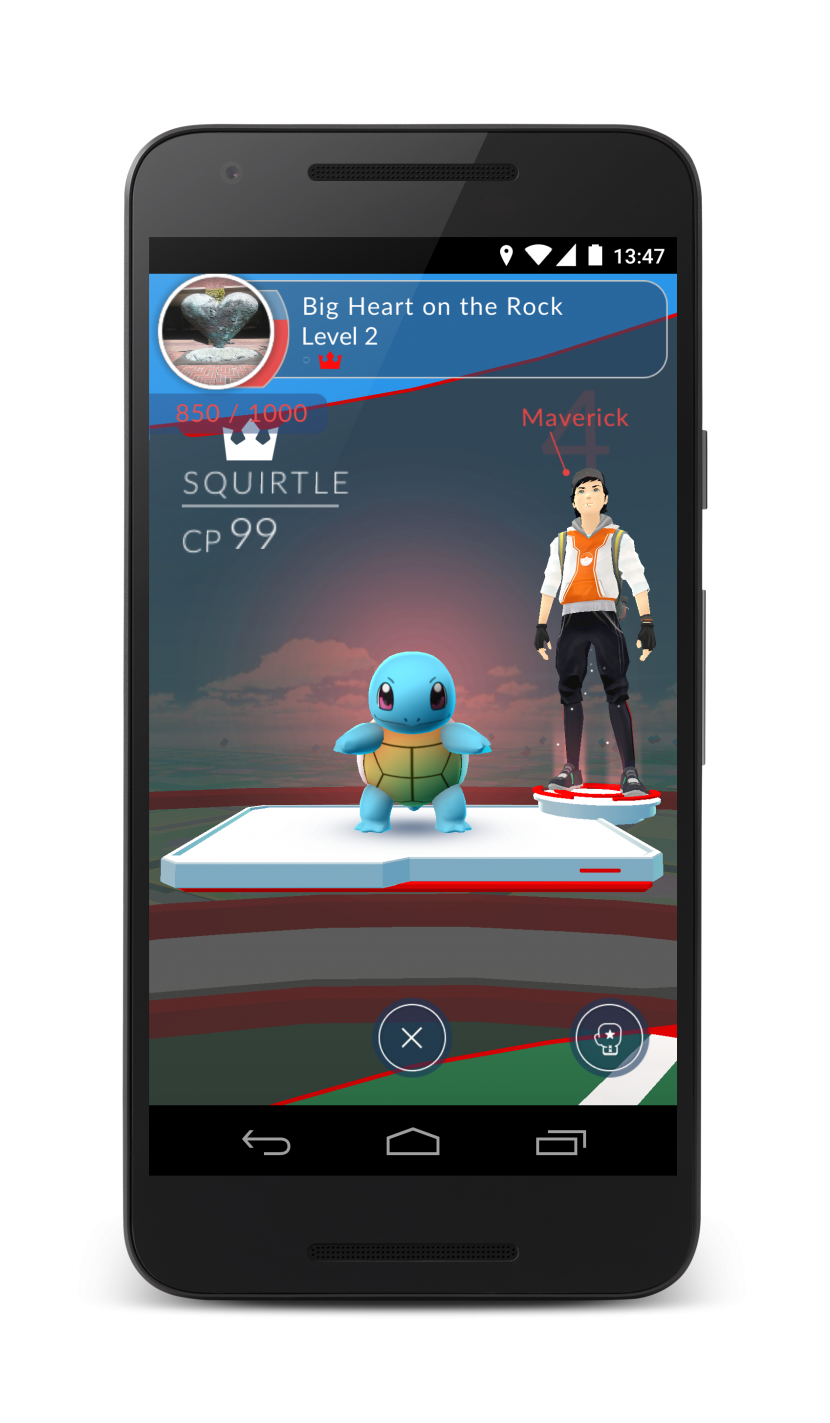 En un cierto punto del juego, te pedirán que te unas a uno de tres equipos. Una vez que te unas a un equipo, podrás asignar un Pokémon que hayas atrapado a un Gimnasio vacío o a uno donde un miembro de tu equipo haya colocado uno de sus Pokémon. Al igual que las Poképaradas, los Gimnasios pueden encontrarse en lugares reales del mundo y, como cada jugador puede colocar solo un Pokémon en un Gimnasio en particular, los miembros del equipo deberán trabajar juntos para lograr una defensa fuerte.