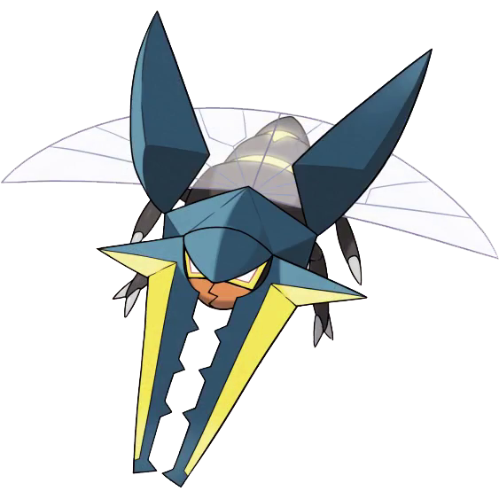 La evolución de Charjabug. Vikavolt es como un acorazado que atraviesa el bosque zumbando a toda velocidad y lanzando rayos eléctricos por la boca. Sus enormes mandíbulas le sirven para canalizar mejor las potentes descargas que dispara.