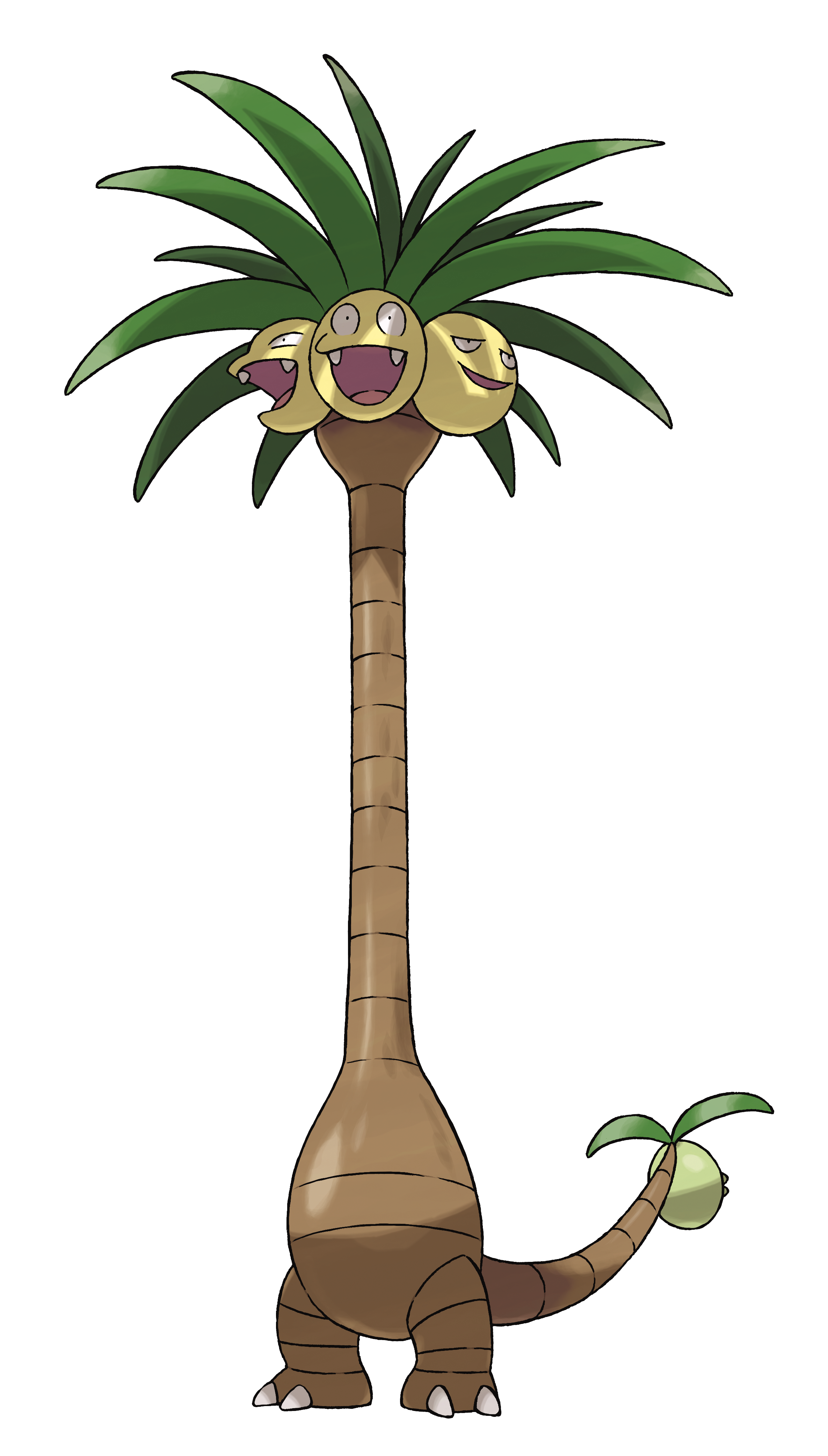 Una de las diferencias más notables del Exeggutor de Alola es que posee una cuarta cabeza. ¡Y en la cola, nada menos! Controla la cola de forma independiente y puede atacar a los enemigos que se acercan por detrás cuando las demás no pueden alcanzarlos con sus ataques.