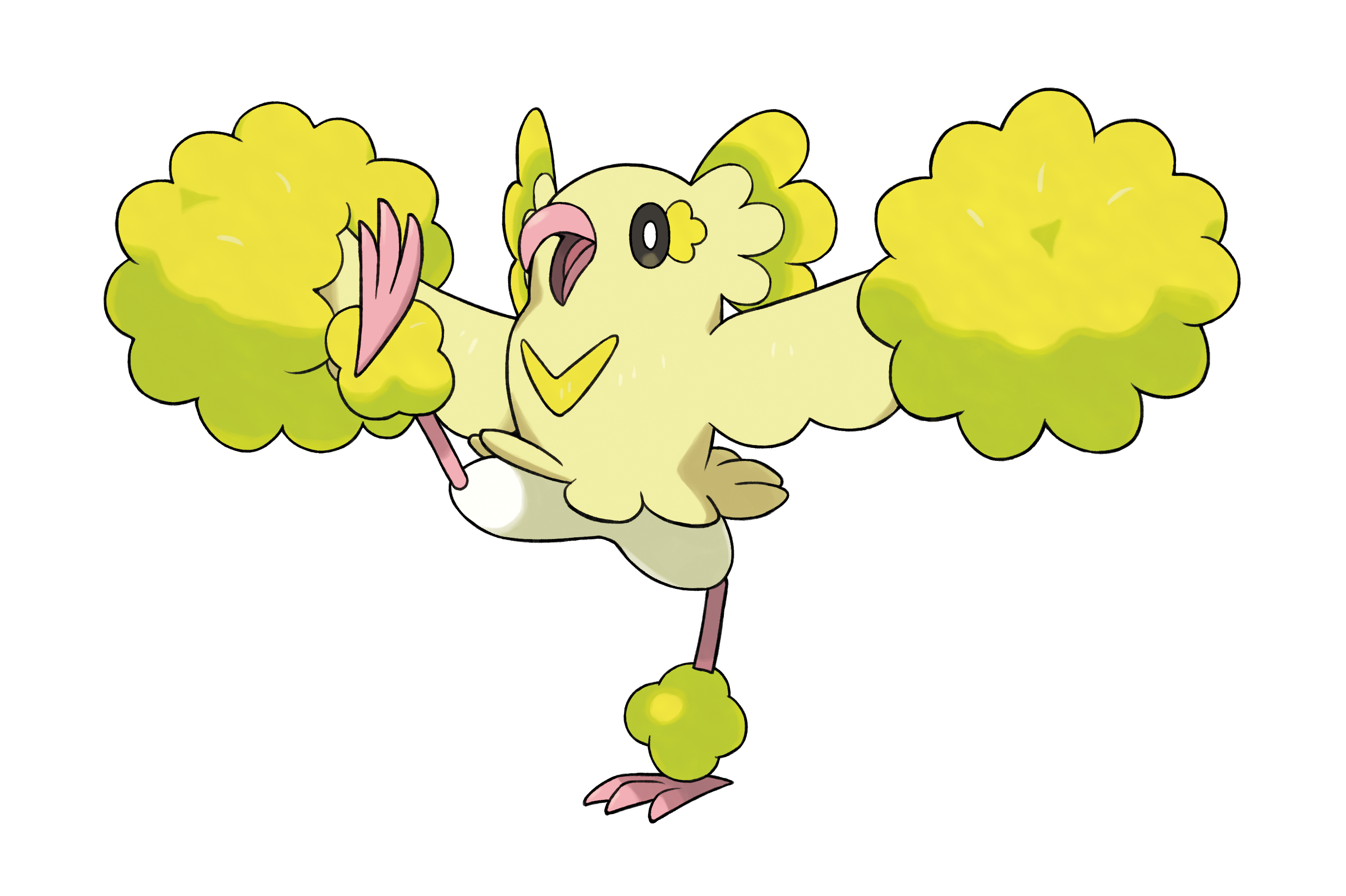Esta forma de Oricorio es muy afable con la gente y usa sus pasos de baile para animar a los Entrenadores que están alicaídos. Sus plumas se cargan de electricidad estática cuando baila.