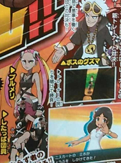 En esta imagen podemos ver por primera vez al equipo malvado de Pokémon Sol y Luna el cual se llamará Team Skull (cráneo). Aunque todavía no tenemos todos los detalles, la chica se llama Purumeri y el chico es un jefe llamado Guzuma.