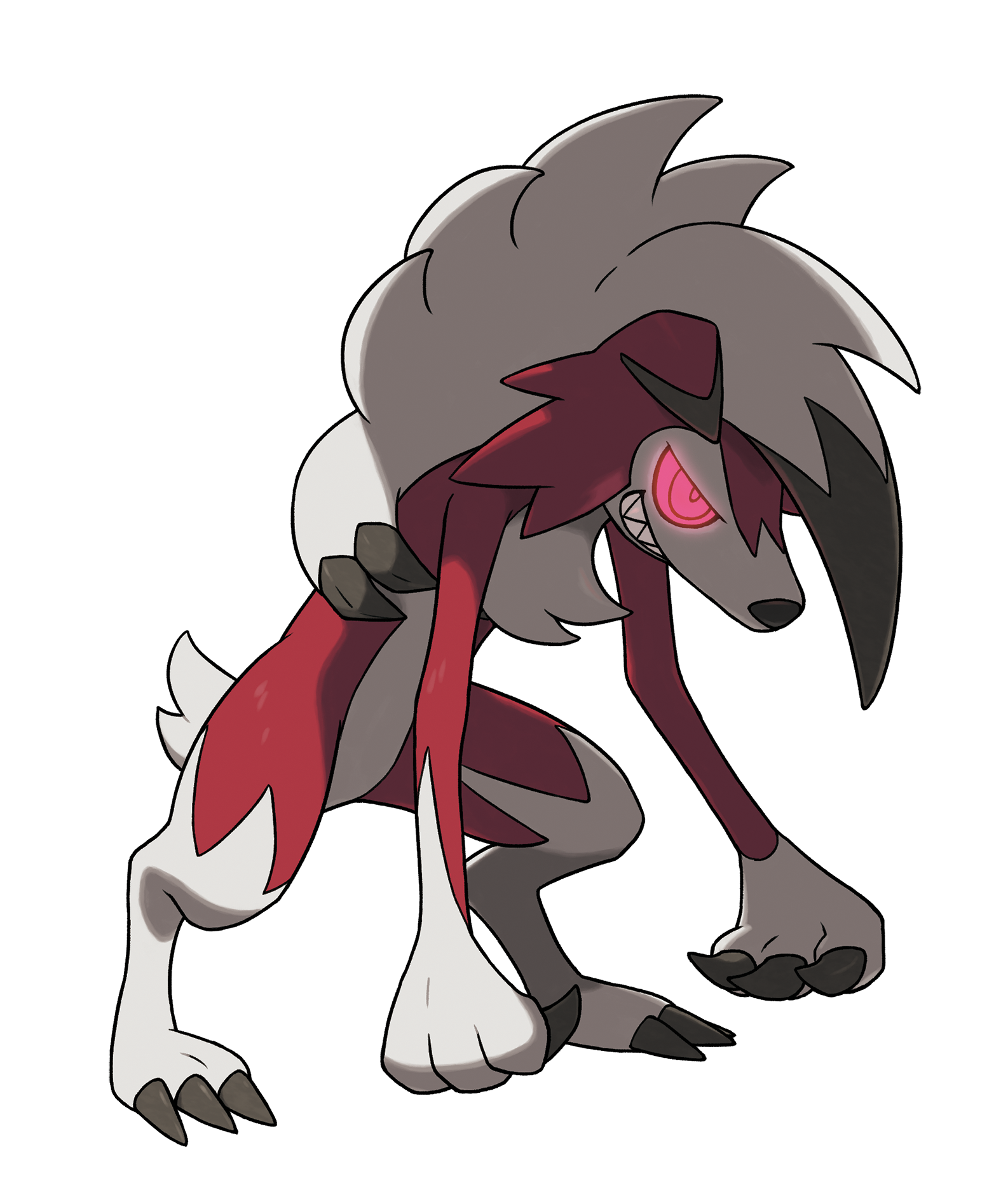 Esta forma de Lycanroc es conocida por sus raudos movimientos, que dejan perplejos a los oponentes. Evita sus envites y les asesta golpes con las afiladas rocas de su melena.