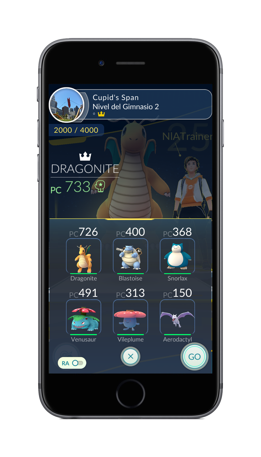 Ahora, sea cual sea tu nivel podrás influir en el gimnasio de tu equipo. Camina con tu Compañero Pokémon hasta el punto de referencia más cerca y demuéstrale al líder de tu equipo que puedes presentar batalla junto a los mejores.