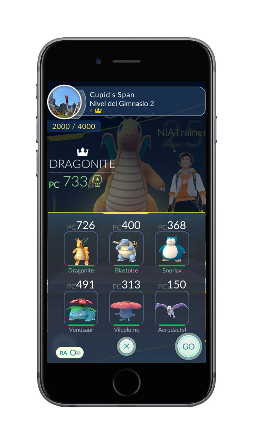 Ahora, sea cual sea tu nivel podrás influir en el gimnasio de tu equipo. Camina con tu Compañero Pokémon hasta el punto de referencia más cerca y demuéstrale al líder de tu equipo que puedes presentar batalla junto a los mejores.