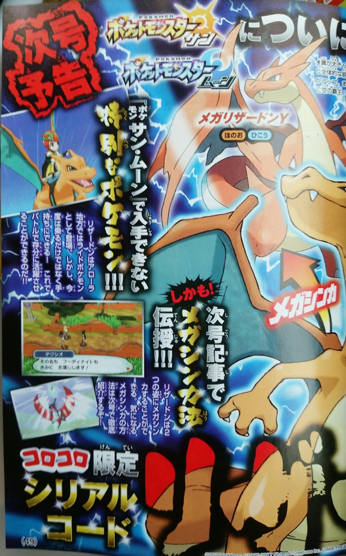 Han comenzado a salir las primeras imágenes de la revista japonesa CoroCoro de este mes, y con ellas nos revelan que habrá una distribución de un Charizard especial para Pokémon Sol y Luna.