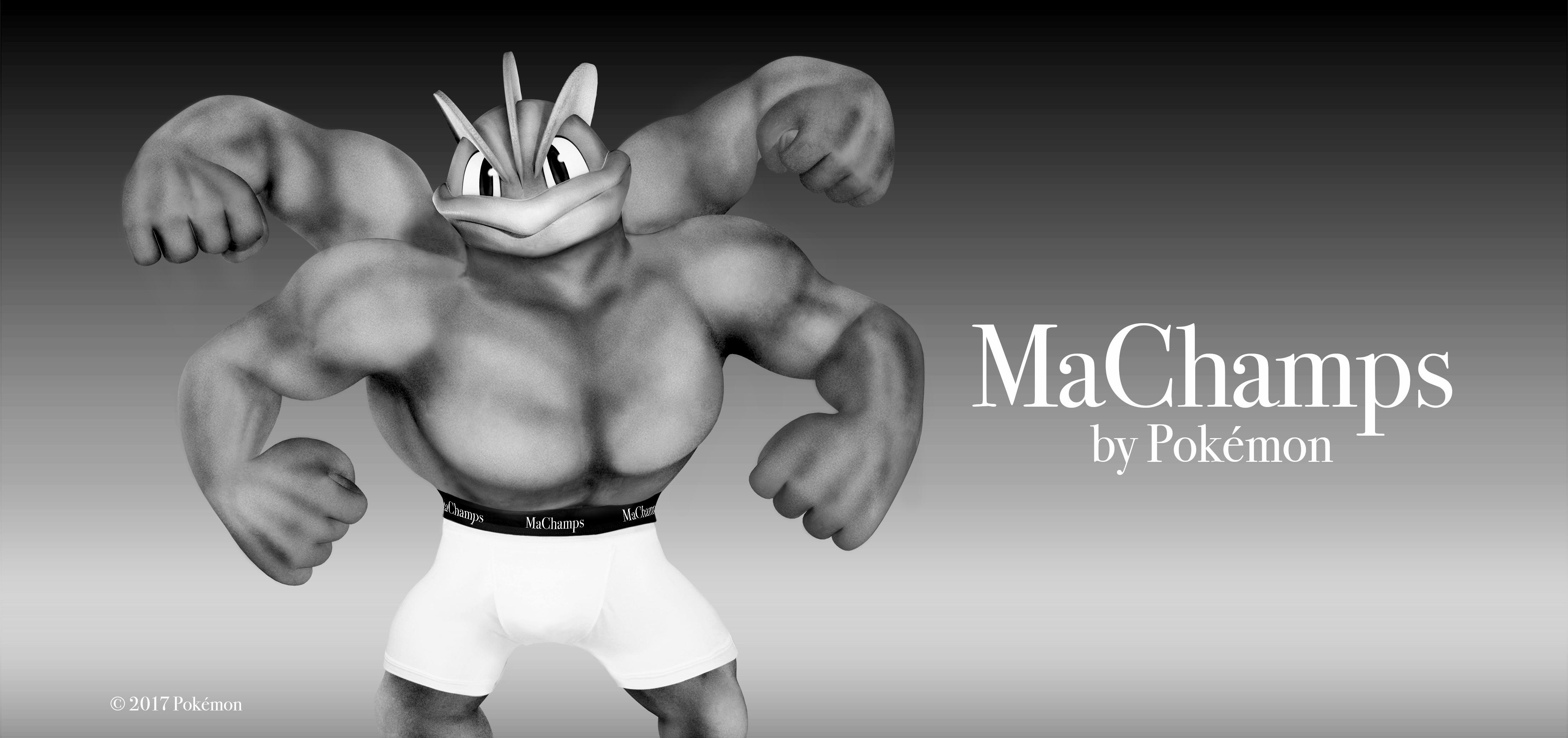 El Pokémon Machamp ha sido confirmado como la cara oficial de la campaña de ropa interior más candente de año, «MaChamps». La campaña ya está rompiendo records, ya que Machamp es reconocido como el primer Pokémon que rompe el molde y consigue un gran contrato de modelaje.
