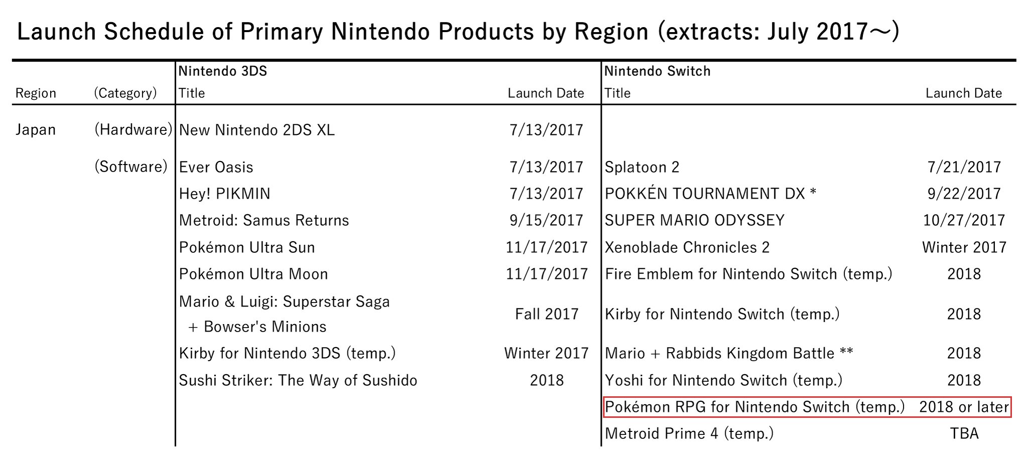 Durante su informe de resultados financieros más reciente, Nintendo ha reconfirmado que el juego principal de Pokémon para Nintendo Switch, anunciado el pasado E3, sigue teniendo un año de lanzamiento indefinido y por el momento solo es «2018 o más adelante».