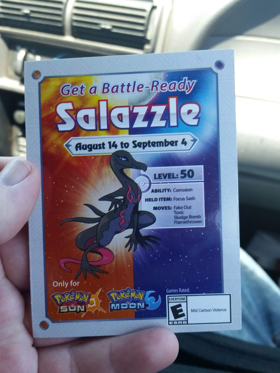 A través de una filtración de GameStop, se ha revelado que un nuevo evento está en camino para Pokémon Sol y Luna en América. Se trata del Pokémon Salazzle, con el motivo de la expansión más reciente del TCG Burning Shadows.