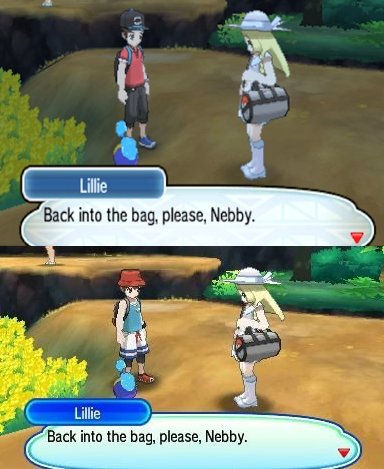 Además, los Ultraentes en la historia serán diferentes. Los dos revelados hoy reemplazarán a UB-02 en la historia principal, que se le aparecía a Hala en una escena del juego. A propósito de esto último, observamos un cambio menor en esta escena, ya que aparece Hau / Tilo acompañando a Hala, cuando esto no ocurría en los juegos originales.