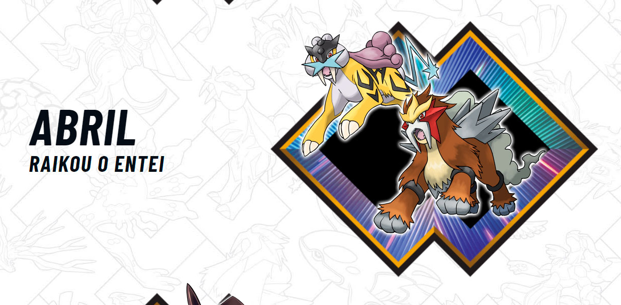• Abril: Raikou, Pokémon legendario de tipo Eléctrico, o Entei, Pokémon legendario de tipo Fuego, de la región de Johto.