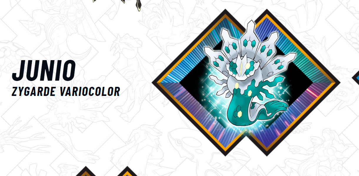 • Junio: Zygarde, Pokémon legendario de tipo Dragón y Tierra con tres formas distintas, de las regiones de Kalos y Alola.