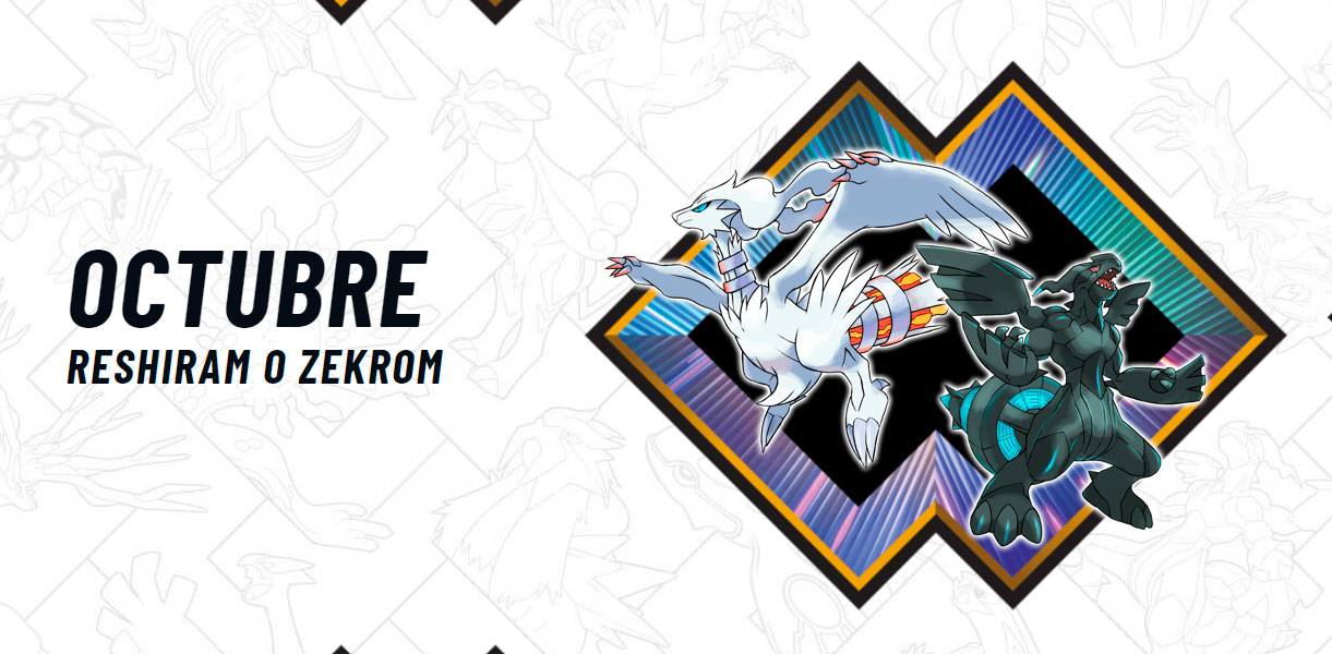 • Octubre: Reshiram, Pokémon legendario de tipo Dragón y Fuego, o Zekrom, Pokémon legendario de tipo Dragón y Eléctrico, de la región de Teselia.