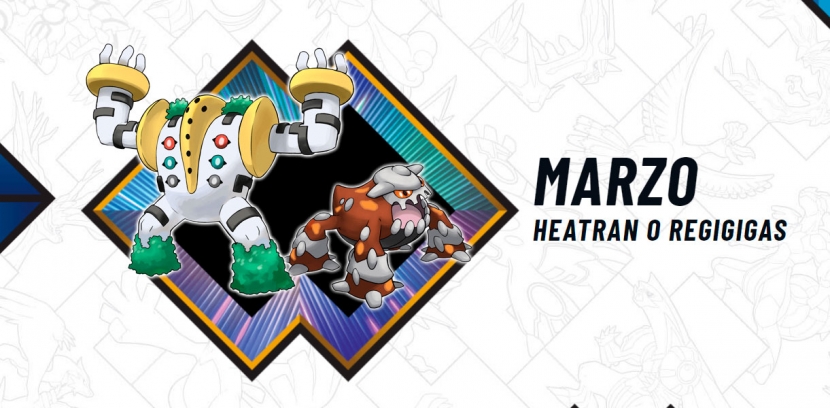 - Marzo: Regigigas, Pokémon legendario de tipo Normal, o Heatran, Pokémon legendario de tipo Fuego y Acero, de la región de Sinnoh.